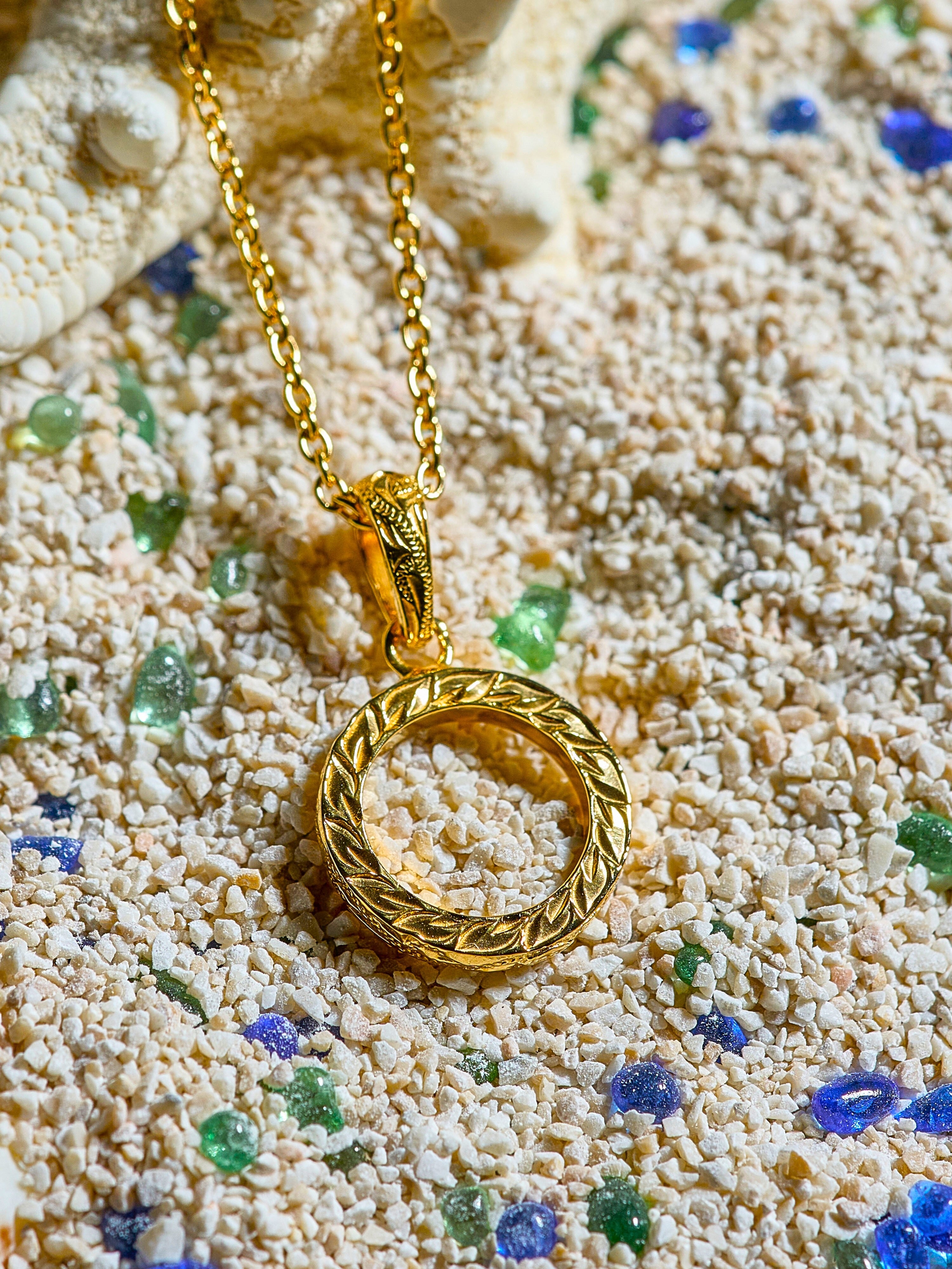 表面に波(スクロール)と裏にはマイレの彫りが施されたリバーシブルチャーム